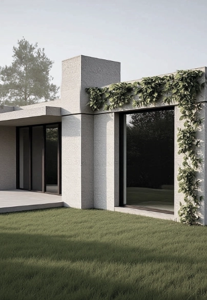 De patio vormt de kern van het ontwerp: ze trekt licht en groen naar binnen en geeft het huis ademruimte. De eetruimte kan volledig worden opengeschoven, waardoor ze uitgroeit tot een natuurlijke verlenging van het terras. Strategisch geplaatste tuinmuren laten de ruimtes verder doorlopen en creëren tegelijk de nodige privacy.